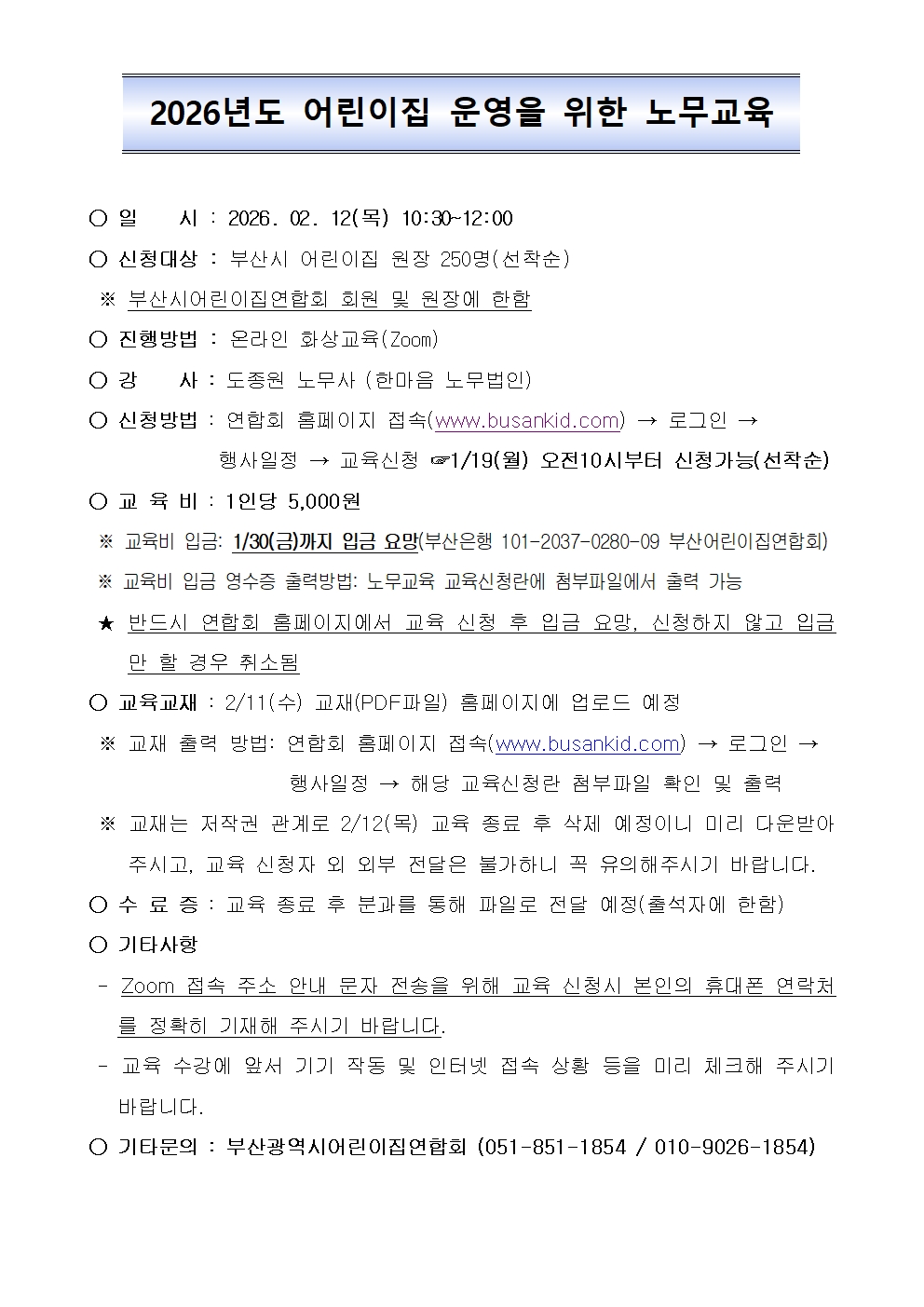 [ºÎ¾î·Ã]2026³âµµ ¾î¸°ÀÌÁý ¿î¿µÀ» À§ÇÑ ³ë¹«±³À° °³ÃÖ ¾È³»