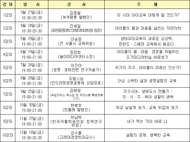 Çѱ¹»ýÅÂÀ¯¾Æ±³À°ÇÐȸ¿Í (»ç)»ýÅÂÀ¯¾Æ°øµ¿Ã¼¿¡¼´Â ¡º »ýÅÂÀû °¢¼º, »ý¸í»ì¸²ÀÇ ±æÀ» ã¾Æ¼ ¡» ¶ó´Â ÁÖÁ¦·Î 2009³â 3¿ùºÎÅÍ 12¿ù±îÁö »ýÅÂÀ¯¾Æ±³À° ¿ù·Ê°Á¸¦ ¿°íÀÚ ÇÕ´Ï´Ù.